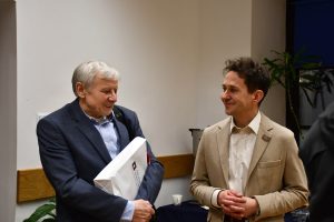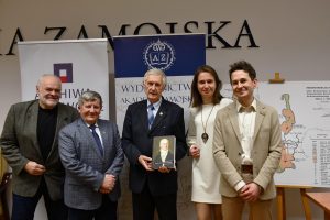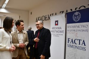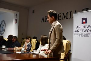 22 lutego 2024 r. w czwartek, Archiwum Państwowe w Zamościu we współpracy z Akademią Zamojską i Wydawnictwem Akademii Zamojskiej zorganizowało zebranie naukowe pt. „W kręgu Towarzystwa Rolniczego Hrubieszowskiego” połączone ze spotkaniem z dr. Januszem Panasiewiczem – autorem monografii naukowej pt. „Stanisława Staszica Towarzystwo Rolnicze. Geneza i pierwsze dekady” wydanej przez Archiwum Państwowe w Zamościu i Wydawnictwo Akademii Zamojskiej. W zebraniu uczestniczyli przedstawiciele środowisk naukowych m.in. prof. dr hab. inż. Piotr Czaja z Akademii Górniczo-Hutniczej im. Stanisława Staszica w Krakowie, dr hab. Ryszard Skrzyniarz, prof. Ucz. Prorektor ds. Nauki i Współpracy z Zagranicą z Akademii Zamojskiej, dr Maciej Usurski z Muzeum Stanisława Staszica w Pile, czy dr Jacek Feduszka z Muzeum Zamojskiego. Zebranie rozpoczął dyrektor Archiwum Państwowego w Zamościu dr Jakub Żygawski przybliżając osobę dr. Janusza Panasiewicza autora publikacji i prelegenta oraz dr Ewelina Lilia Polańska dyrektor Wydawnictwa Akademii Zamojskiej omawiając proces wydawniczy i wartość dzieła.