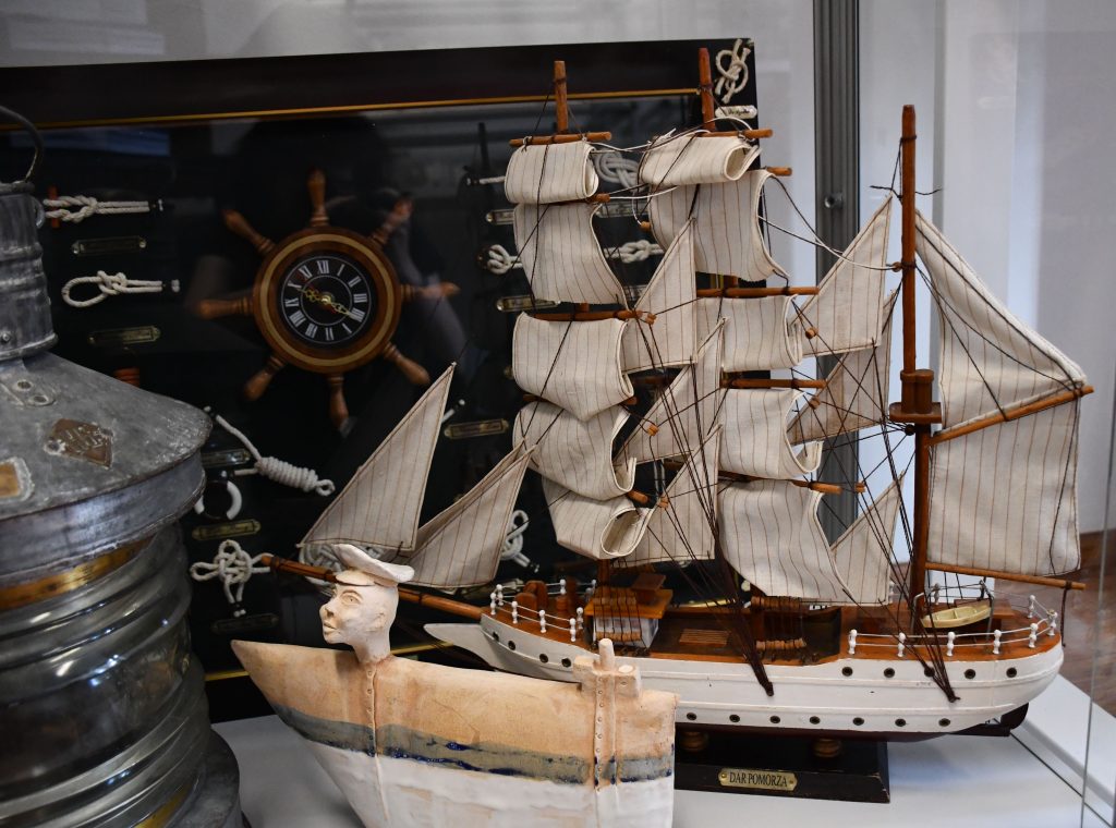 Sala Morska powstała dzięki pasji i zaangażowaniu członków Zamojskiej Grupy Morskiej, do której należą m.in. Teresa Sołowiej i Janina Gąsiorowska. To właśnie Pani Janina od ponad czterech dekad konsekwentnie dokumentuje wszelkie więzi Zamościa z morzem. Jej osobiste zbiory – fotografie, publikacje, kroniki, a także unikalne pamiątki – stały się fundamentem ekspozycji. Kolekcję dopełniają dary kapitanów oraz ludzi morza, którzy przez lata współpracowali z Zamojską Grupą Morską.