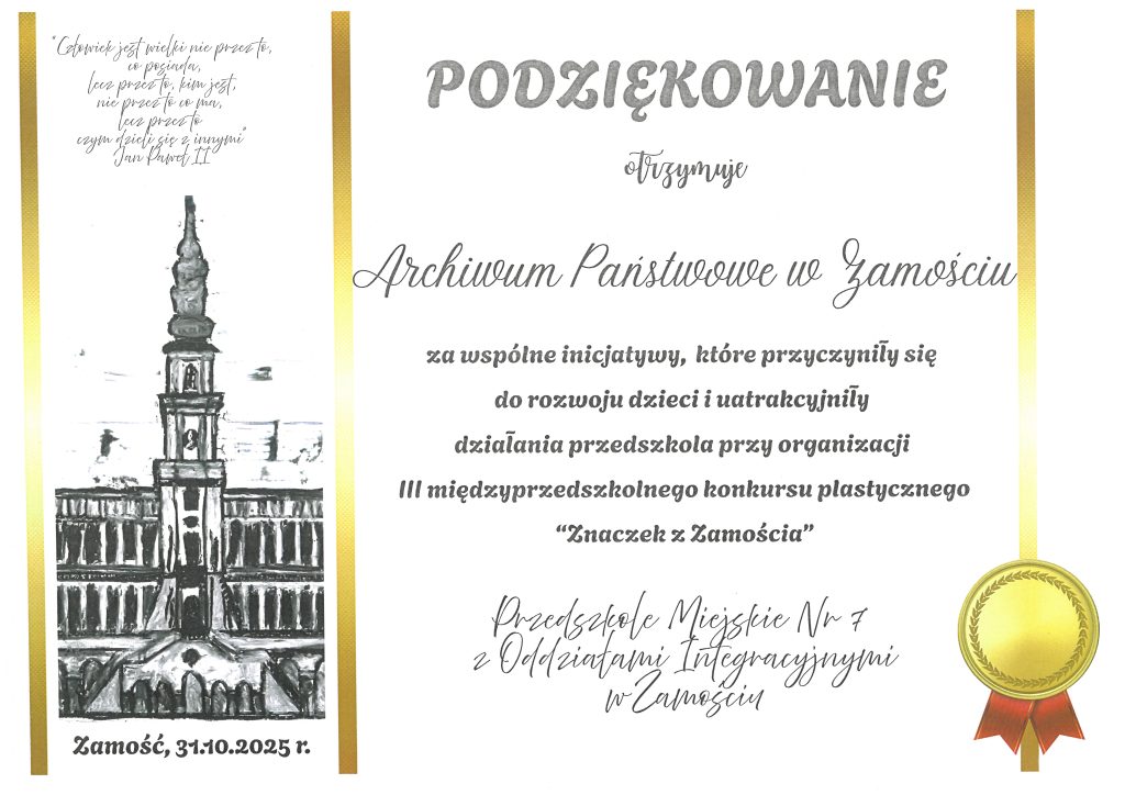 Partnerami III Międzyprzedszkolnego Konkursu Plastycznego „Znaczek z Zamościa” byli: