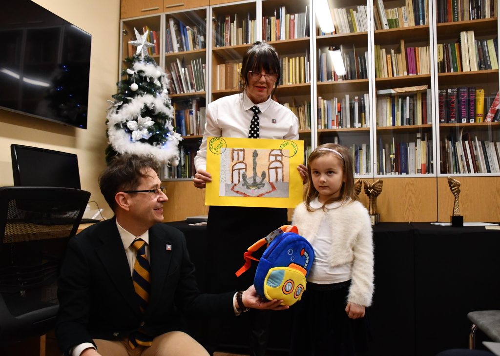 Tego dnia miała miejsce także wyjątkowa chwila – uroczyste wręczenie nagrody specjalnej dla Kornelii z grupy Lisków z Gadu Gadu Niepubliczne Przedszkole „Kangurek”, Kornelia została jednocześnie najmłodszym darczyńcą Archiwum, przekazując do zbiorów swoją pracę plastyczną „Znaczek z Zamościa”, która będzie zdobić Salę Morską.